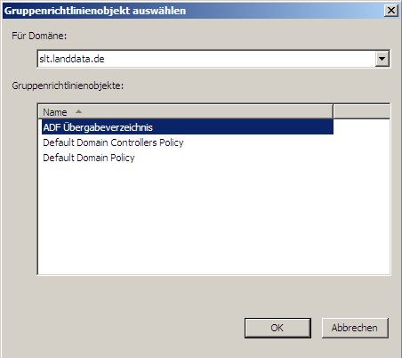 => das Gruppenrichtlinienobjekt „ADF Übergabeverzeichnis“ anlegen und bearbeiten