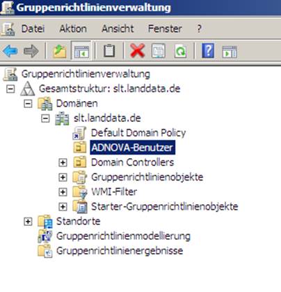 => Ansicht der Gruppenrichtlinienverwaltung aktualisieren - „ADNOVA Benutzer“ wird jetzt angezeigt.