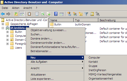 Die Einrichtung von „Active Directory-Benutzer und -Computer“ ist je nach Organisation unterschiedlich, so dass die folgenden Schritte gegebenenfalls anzupassen sind.